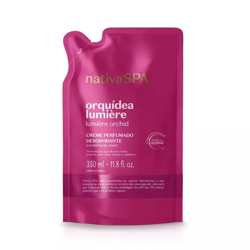 Junte a intensidade da Orquídea com os encantos das agradáveis noites de verão, e você terá Nativa SPA Orquídea Lumiére, uma linha que te convida a irradiar o seu poder de conquista. Sua fragrância Floral Ambarado envolve seu corpo em uma intensa perfumação duradoura e promove uma pele ultra macia e radiante. Você merece todo esse brilho. Pele assim, é Nativa SPA.